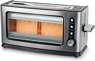 Trebs 99320 Infrarot Automatik-Toaster mit Sichtfenster im Edelstahldesign, 7 Bräunungsstufen, für bis zu 2 Toastscheiben, Brotlift, Krümelfach, Auftauen, Rösten, Aufwärmen, 900 Watt