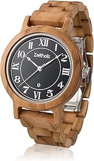 Unisex Holzuhr - Modell Altenberg, Handgefertigt aus 100% natürlichem Zebrano mit Quarzwerk - Leichte analoge Holzuhr für Herren und Damen - Verstellbares Band passt für jedes Handgelenk