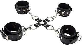 Ouch! Leather Hand and Leg Cuffs - Hand- und Fußschellen aus Leder (2 Paar) - schwarz