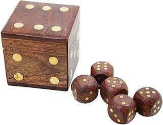 Store Indya Neujahr Geschenke, Palisander Dice Spiel Set mit dekorative Aufbewahrungsbox IncludesRolling Dice Hand geschnitzt mit Messingeinlage