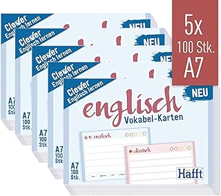 Häfft Vokabel-Karten A7 Englisch liniert, 500 Stück | 2 Seiten: Englisch/Deutsch | Ampel-Prinzip für das Langzeitgedächtnis | passend für gängige Lernboxen, handlich für unterwegs