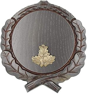 Keilerschild Keilerbrett Gewaffbrett Trophäenschild rund dunkel AF 13 cm mit 2 Stück Aluminium Eichenlaub Deckblatt