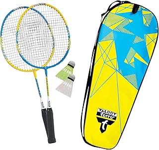 Talbot Torro Badmintonschläger Attacker, Federballschläger für Einsteiger aus gehärtetem Stahl mit klassischer Kopfform, Farbe: Gelb-Blau, 429806