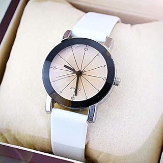 Waymeduo Damen-Armbanduhr Elegant Uhr Modisch Zeitloses Design Leder Leder-analoge Quarzuhr Armbanduhr(Weiße)