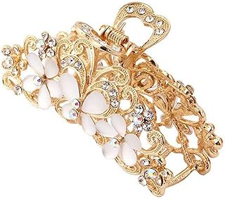 Haarspange für Damen, Retro-Stil, hohl, Blume, elegant, Metall, Strass, Haarnadel (Gold)