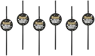 Simplydeko Papierstrohhalme | Papier-Trinkhalme | Strohhalme aus Papier | Papptrinkhalme zu Party, Kindergeburtstag & Babyparty | Happy New Year | 6 Stück