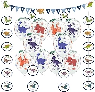 Libetui Deko Set Dino Geburtstag Dekoration Set Dinosaur Happy Birthday Girlande Dino Dekohänger Luftballon Dino für Kindergeburtstag Dino