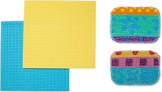 Papierlose Küchen-Reinigungstücher und -schrubber, Kombi-Packung | zwei Premium-Geschirr-Peelings und zwei Reinigungstücher | 150 x 180 cm Waschschrubber und 2,1 x 2,3 m Reinigungstuch