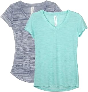 icyzone Damen T-Shirt Kurzarm V-Ausschnitt Yoga Tops Casual Sport Shirt 2er Pack